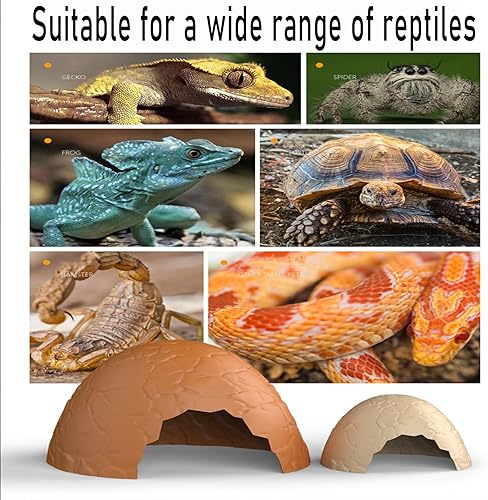 Unique Design:This cozy resin eggshell house is a reptile hide perfect for reptile, amphibian, or other small animal including leopard geckos, hermit crabs, lizards, crested gecko,velvet geckos, chameleons, frogs, corn snakes, small parrots, small birds and more - providing them with a cozy hideout.