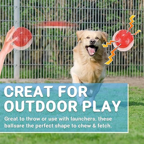 [Premium Quality] Dog toy balls are made of premium TPR thermoplastic elastic rubber, light weigh, high bounce and bite resistant; Build-in squeaker to engage your dog's interest, no choking hazard, safe for your fur friends