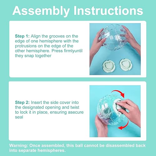 • 【Easy to Clean】This hamster exercise ball features a detachable design, making the cleaning process quick and easy. The ball can be easily taken apart for separate cleaning of each part. Additionally, the smooth material of the ball is not only easy to clean but also resistant to dust and fur, further enhancing cleaning efficiency.