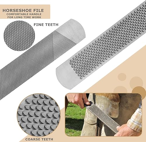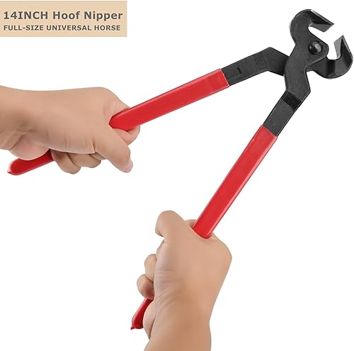 【Professional Farrier Tool Kits】The package includes 14 Inch hoof nipper,hoof rasp with rubber handle,hoof trimmers,hoof knife and brush,equine hoof rasp coarse and carry bag.Ideal for trimming livestock hooves to facilitate walking and running.