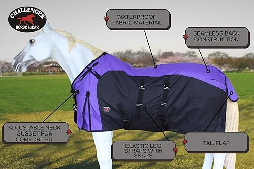 Challenger medium-weight horse blanket features a waterproof, breathable, and durable 1200D outer shell constructed with rip-stop weave fabric. No Fill Inside