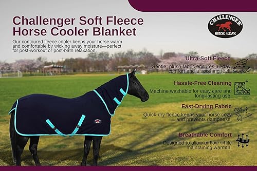 ✔ HORSE FLEECE COOLER: CHALLENGER horse polar fleece cooler blanket with MOISTURE WICKING PROPERTIES, is a type of equine blanket designed primarily for use after exercise, bathing, or exposure to cold weather. It helps horses cool down gradually and prevents them from getting chilled.