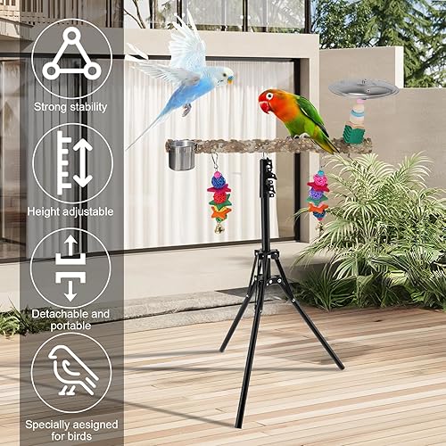 Adjustable Height for Freedom & Interaction: This versatile bird perch stand offers flexible height adjustment from 34 to 72 inches, allowing you to customize the perfect position for your feathered companion. Free your bird from the confines of its cage and encourage natural movement while enjoying closer, more engaging interactions. Whether placed indoors or outdoors, the adjustable design ensures your pet can explore safely while staying within your reach—perfect for playtime, training, or simply bonding.