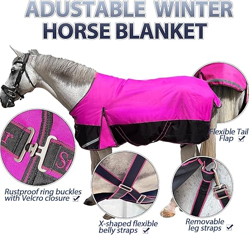【Outdoor Ready】 Lightweight yet thick, this blanket comes with adjustable cross belly straps and removable elastic leg straps for a secure and flexible fit. Reflective strips on the chest and tail improve visibility in low-light weather, keeping your horse safe while moving outdoors