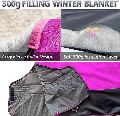【Warm Protection】 Made of 1200D rip-stop polyester shell with 300g filling, this horse blanket offers excellent 3000mm waterproof and breathable performance. It keeps your horse dry and warm throughout winter, whether indoors or outdoors. Durable outer fabric with a stylish look provides extra care, especially for older horses, clipped horses, or those with weaker body condition