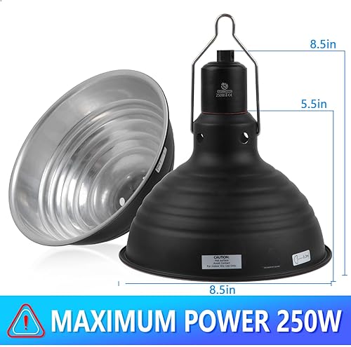 【Aluminum Alloy Reflection】:Our reptile light fixtures are designed with a deep dome aluminum alloy optical reflector, the interior of lampshade is made of metallic aluminum and has been polished, which improves the light reflection efficiency of the bulb and significantly increases the output of UVA and UVB.