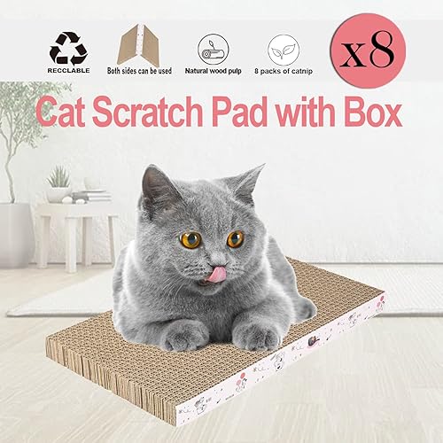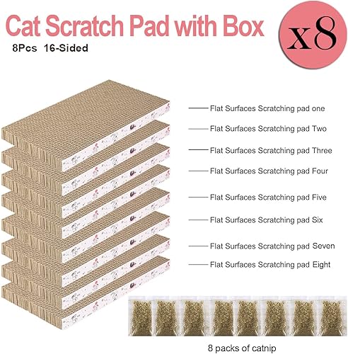 Great Value---The Scratcher Box is durable and 8 pieces Cat Scratching Pads are flipable use for better value