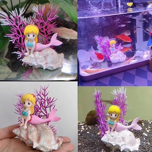 Mermaid & Natural-Looking Resin Plants – The detailed mermaid statue brings a fairytale charm to your tank, crafted from safe, non-toxic resin that won’t harm fish or plants. Six flexible artificial water plants in varying heights and designs, offering shelter for fish while enhancing visual depth without maintenance.