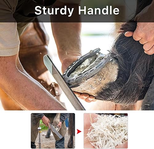 【Perfect for Various Hoof Types】: This 14-inch hoof trimming tools kit is perfect for trimming horse hooves, as well as cow and goat hoof trimming. The hoof rasp, made from high-quality carbon steel, features both rough and fine cuts, allowing for accurate shaping and smoothing of both horse and goat hooves.