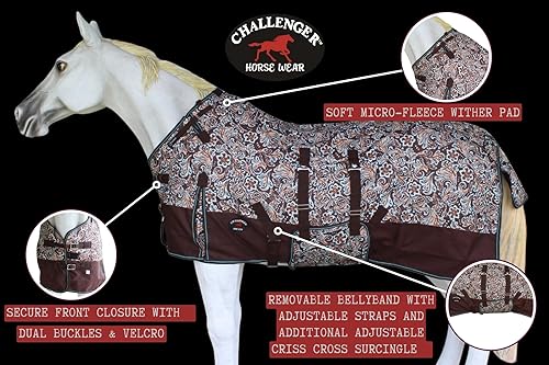 ✔ CHALLENGER 1200D HORSE Sheet (NO FILL)– Built to Perform. Made to Last. Engineered for horses that demand more, Challenger Horse Blankets deliver rugged protection and unbeatable comfort in any season. Crafted from tough, water-proof, windproof, and breathable poly outer shell with 210 lining with reinforced stitching, these blankets are built to withstand the elements while keeping your horse warm, dry, and comfortable. Thoughtful features like adjustable closures, shoulder gussets for