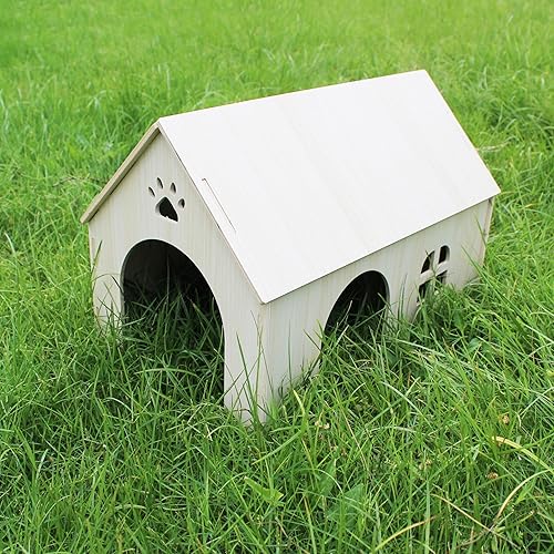 【Well-Made and Unique Design】The wooden hamster hideout has a clean burr-free cut surface and every corner is polished smooth. Chinchilla house without base design, good cleaning effect, easy and convenient installation. The wood hamster hideout provides a safe harbor for your small animal with lookout. It's a warm home for pets. Note: Please kindly check the package when you receiving it, and contact us immediately if any issue.