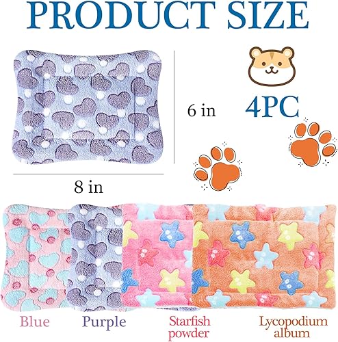 4 Pcs Guinea Pig Bedding Winter Guinea Pig Plush Small Animal Cage Liners Soft Dog Cat Bed Mat for Indoor Rabbit Hamster Squirrel Hedgehog Chinchilla Ferret(6 x 8 in)(6 x 8 in)
