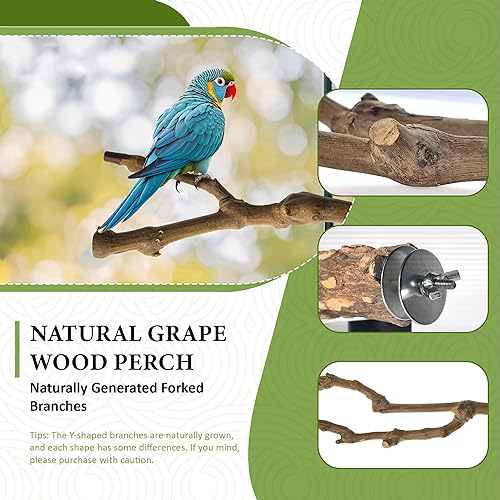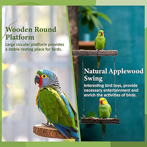 4 Types of Bird Perches: The parrot perch set includes 2 grapevine Y-shaped perches, 3 pepperwood claw perches, 2 round platforms and 1 applewood swing. 4 different types of perches give your birds a different experience and create a more natural habitat.