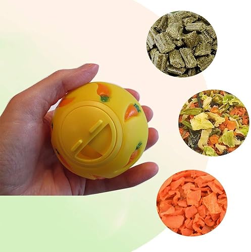 Interesting Treat Ball: put your pet favorite kibble or small treat (diced carrot, or dried fruit or herbs) inside the rabbit stacking cups hollow ball, adjust the opening to control flow of treats, with rainbow color, which looks bright and eye catching, can immediately catch the little animal's eye, keeping it in a happier mood every day.
