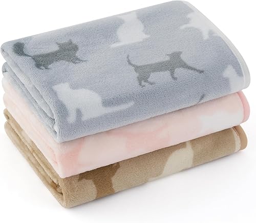 Bedsure 1 Pack 3 Pet Blankets, Super Soft Fluffy Premium Fleece Flannel Portable Throw Dog Blankets for Small Dogs, Printed Cat Puppy Blanket Grey/Brown/Blue Small(23x16 inch)