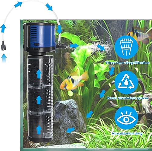 CRYSTAL CLEAR - This fish tank filter with 3-stage of deep filtration is a water circulation system in the aquarium, reducing the number of water changes in the tank and making cloudy water crystal clear.