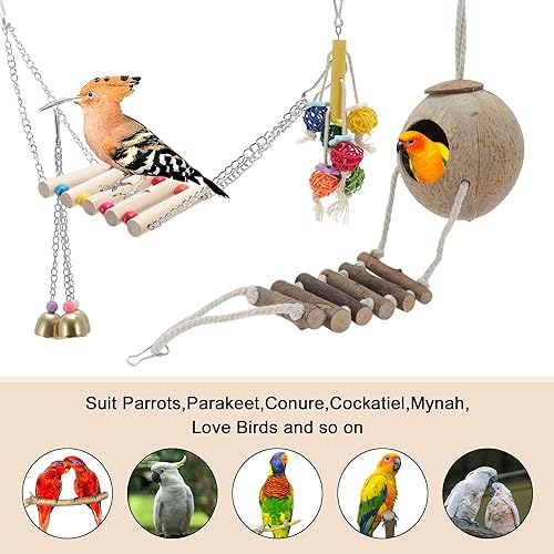 Suitable for Various Birds: These bird cage accessories are designed for small to medium-sized birds including parrots, lovebirds, conures, and finches, this toy set provides entertainment and enrichment, targeting bird toys for parrots