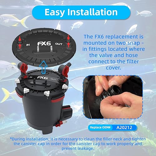 Easy Installation: The FX4 replacement is mounted on two snap-in fittings that are located where the valve and hose connect to the filter cover. No special tools are required for installation. During installation, the filler neck needs to be cleaned and the canister cover tightened so that the canister cover can function properly and prevent leakage.
