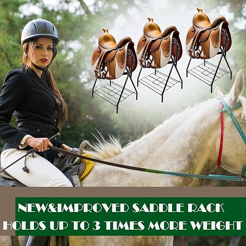 Multifunctional Saddle Racks: you get 2 sets of black saddle racks measuring approx. 22 x 26 x 36 inches (L x W x H), provide ample space for storing your equestrian equipment and fit well in your tack room, barn, or even the trailer, ideal for horse riders needing a versatile saddle rack at home or on the road in a trailer