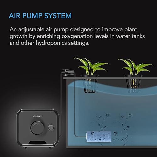 AC Infinity Air Pump One-Outlet Adjustable Oxygen Pump Kit with Tubing, Check Valve, and Air Stone, for Aquariums, Ponds, and Hydroponics Systems(4.72 L Inch x 2.75 W Inch x 2.51 H Inch)