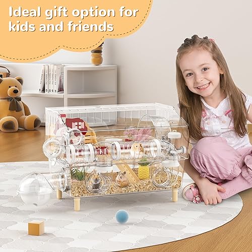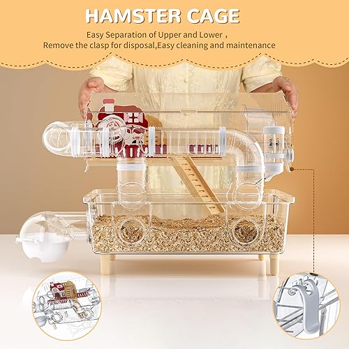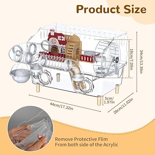 Bite-Resistant & Long-Lasting Use -- Crafted from thick, chew-proof, scratch-resistant crylic and reinforced plastic foot, this clear hamster cage withstands even the most energetic dwarf hamsters, This mouse cage will be a great investment because of its long-lasting and aesthetic design.