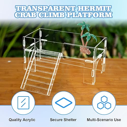 Packaging Includes: You will receive a set of hermit crab climbing platform, plastics coconut tree and rubber rings in the packaging. Decorating the hermit crab pond also increases the habitat and activity space for hermit crabs.