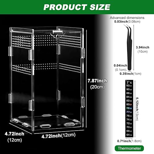 【Perfect Size for Diverse Species】This pre-assembled 4.72" x 4.72" x 7.87" enclosure is ideally sized for spiders (including jumping spiders and tarantulas), mantises, and various other insec-ts, offering enough space.