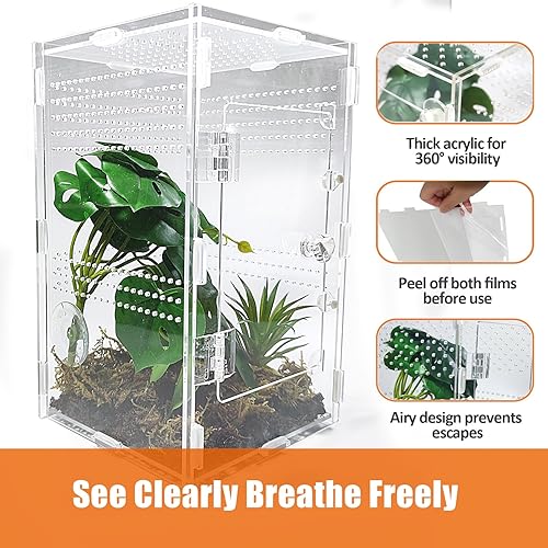 Versatile Jumping Spider Habitat: Perfect for keeping jumping spiders, snails, mantises, millipede, and other small arboreal pets, especially juvenile reptiles that require vertical space