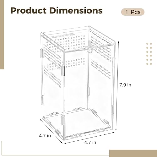 Versatile Habitat Design: This compact enclosure, measuring 7.9 in x 4.7 in x 4.7 in / 20 cm x 12 cm x 12 cm, is ideal for diverse small reptiles; perfect as gecko terrarium, frog, or lizard habitat; transparent buckle connectors allow swift, tool-free assembly