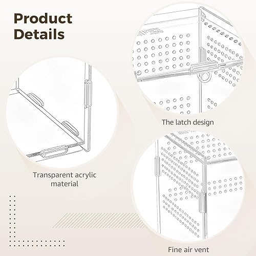 Optimal Airflow & Security: Ensure pet well-being with ample, consistent ventilation through precisely placed circular holes on sides; fine apertures prevent escape while avoiding stuffy, unsafe conditions; crafted from safe, safe acrylic for a secure habitat