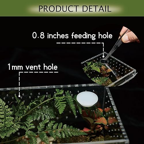 Pre-assembled acrylic terrarium with ventilation holes & feeding port - ready to use instantly(No assembly required )!