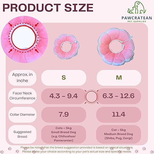 【Adorable Flower Design】The Pawcratean Elizabeth Collar features a unique and cute flower design, transforming the traditional recovery collar into a charming accessory. This delightful design not only serves its protective purpose but also makes your pet look adorable, ensuring they feel special even during recovery.