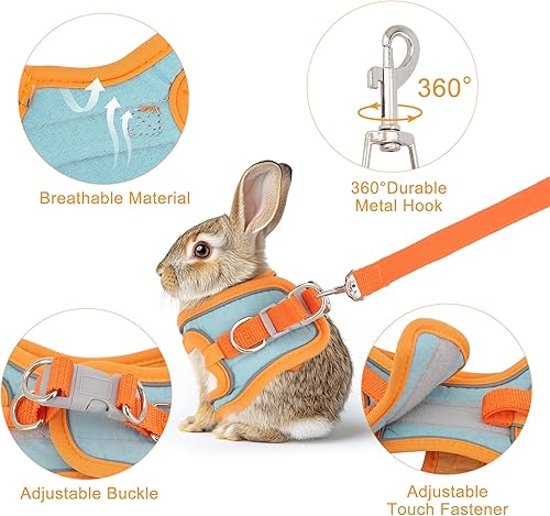 Perfect Pet Accessories: The rabbit harness and leash set is very lightweight and portable to conveniently support adventures outdoors. When not in use, pet owners can easily store it in a pocket or bag. Its quick release buckle can be quickly put on the pet, which is convenient and practical. This rabbit vest harness is designed specifically for all kinds of small pets like rabbits, cats, guinea pigs, chinchillas, hamsters, ferrets, gerbils, mice, etc.