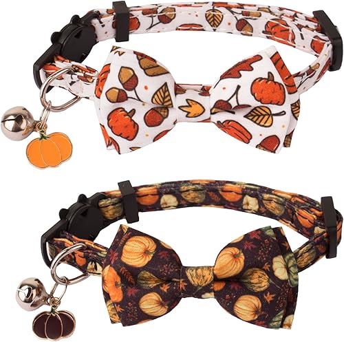 Package: 1* pumpkin pattern halloween cat bowtie collar, 1* ghost cat halloween collar, full of halloween atmosphere, best gift for your cats on halloween