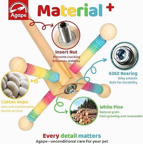【Rest & Play】This product features four perches with durable bearings, allowing it to rotate freely 360°. It seamlessly combines rest, play, and exercise, providing long-lasting entertainment and stimulation for your bird. Plus, you can manually rotate the perches to enhance interaction and bonding time with your feathered friend