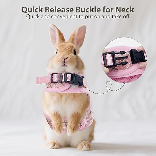 Ultra Soft & Comfortable: Made of thickened 3D mesh fabric, this rabbit harness features elastic cushioning and soft edges to prevent chafing. Provides all-day comfort without discomfort, perfect for sensitive skin of small pets like ferrets and guinea pigs.