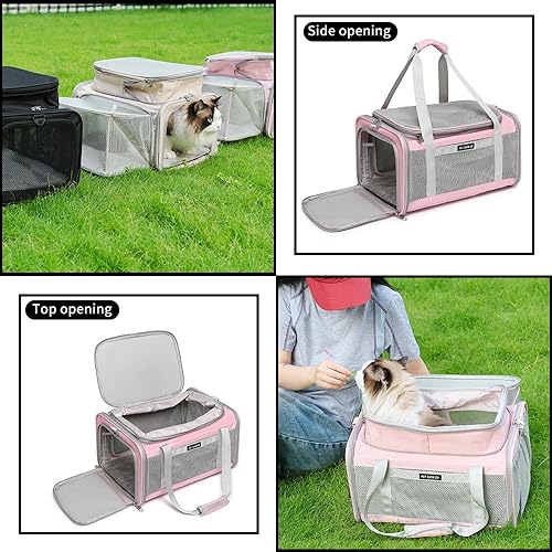 Durable Construction with Dual Openings. Lightweight yet sturdy pet travel carrier designed for convenience. Features two easy-access openings—one at the top and one on the side—allowing smooth entry and exit for your pet. The structured frame helps the carrier maintain its shape during trips.