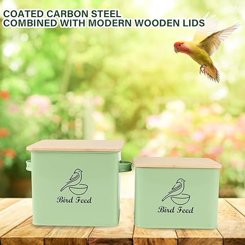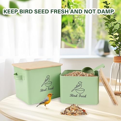 【Versatile bird seed storage】-Crafted with a sustainable bamboo lid and a powder-coated galvanized iron body, this container is both stylish and practicality,for food safety,Keep all seed fresh and ready to use,ideal for storing wild bird seed ,sunflower seed,fruit and nut seed,Thistle Seeds .