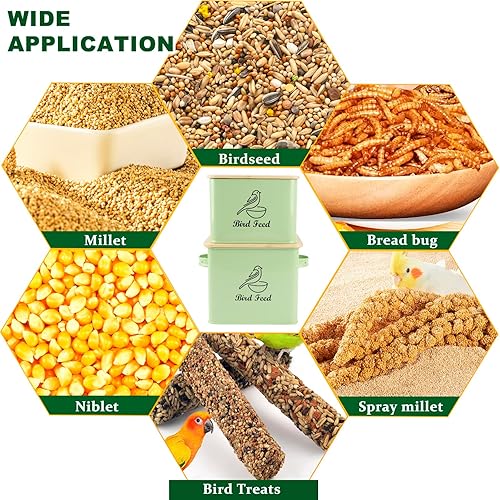 【Airtight bird seed container 】- The metal bird seed storage containers use wood lids and silicone sealing rings for a better airtight ,The good sealing design is leak-proof, moisture-proof and dust-proof, which can keep the bird seeds dry and prevent the action of mouse and squirrels.