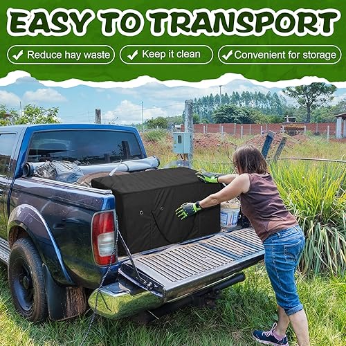 Reinforced for Easy Carry and Transport: our hay storage container is equipped with padded straps and reinforced side handles, making it easy to carry and transport hay; The three-sided zippered closure allows for smooth opening and closing, while keeping the hay securely inside during transit, helping to keep your vehicle and stable clean and tidy