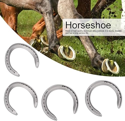 Aluminum Alloy Horseshoes 4pcs Horse Riding Tool Kit for Indoor Outdoor Use Sturdy Long Lasting Non Slip and Wear Resistant Design for Horse Hoof Protection (6)(6)