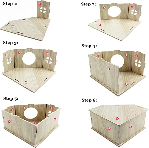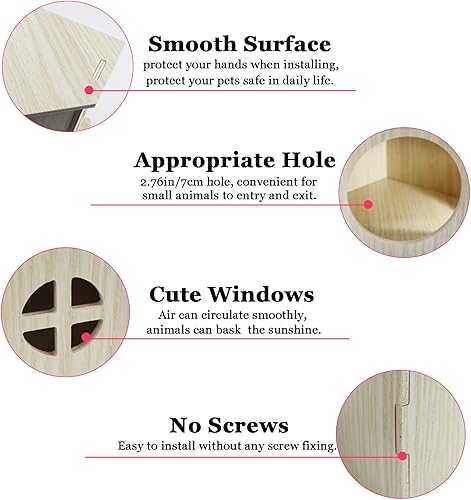 【Convenient Installation:】Just follow the instructions which shows in photos, this hamster hideout house can be easily assembled and disassembled. Please rest assured that it is very simple and convenient. If there are any problems which you meet when installing, please feel free to contact us.