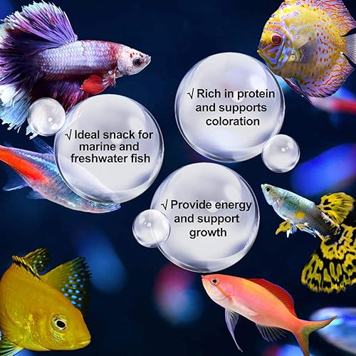 ✔SAFE ALTERNATIVE - Freeze dried blood worms are just as nutritious as live food, without the risk of bacteria or parasites. FEEDING INSTRUCTIONS: Feed as a part of a varied diet, two to three times a week in conjunction with other fish foods, feed only as much as your fish can consume within 3-5 minutes. Best food for Neon Fish, Guppies Fish, Angel Fish, Betta Fish, Discus, Catfish, Cichlids, Goldfish, Anthias, turtle and more!