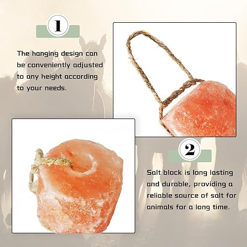 Easy to Install:Salt block for deer comes with a rope for easy hanging in the proper position of the stable or pasture,ensuring that the animal can easily licking,and this design effectively prevents the salt block from being contaminated by the ground,ensuring the safety of the horse
