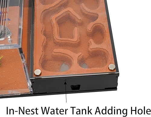 Size:The ant nest is composed of activity areas and living areas.The Ant Nest is 3.74 inches long, 4.13 inches high and 1.18 inches wide.Living areas also have rockeries to enhance the ornamental aspect.The overall design of the nest simulates the underground cave of an ant colony