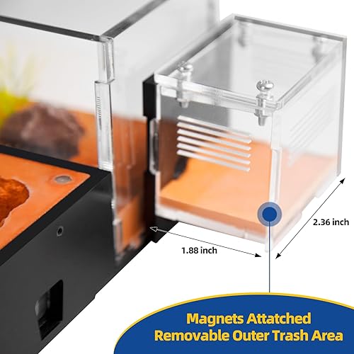Size:The ant nest is composed of activity areas and living areas. Activity area 9.06 inches long, inches high and 4.33 inches wide.Living area 4.5 inches long, 2 inches high, 3.5 inches wide.Living areas also have rockeries and plants to enhance the ornamental aspect