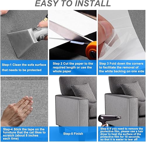 Large area coverage: 12PCS 12" x 17", this cat scratch deterrent furniture protector pasted in any corner of the sofa;This anti scratch cat tape can also be cut into any shape and size to meet the use of all furniture.