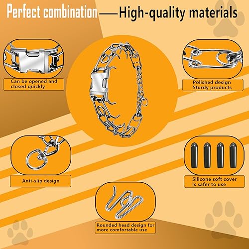【Safe and Durable】The Dog Chain Link Collar is Made of High Quality Stainless Steel, No Rust and Sturdy. With our Dog Collar You Don’t need to Worry About Your Dog Being Naughty and Breaking the Chain. Every Edges of the Chain Links Are Polished to Very Smooth, The Rubber Caps Will Also Provide Comfort Touch to Your Dog