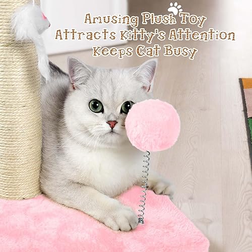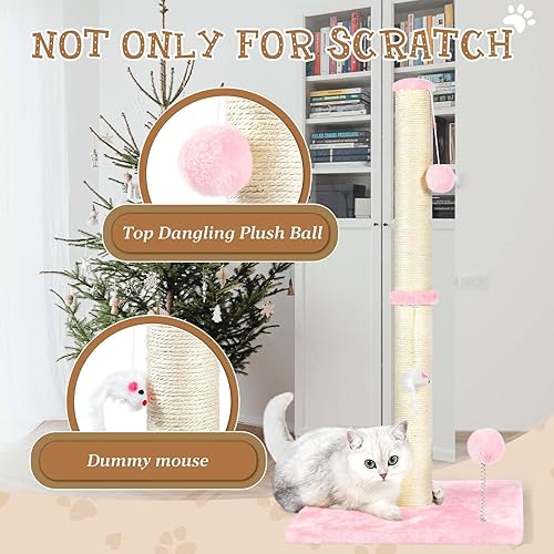 ANWA 32" Tall Cat Scratching Posts for Indoor Cats, 3-in-1 Cat Scratching Post with Plush Toys, Premium Sisal Post for Cats at All Ages with Reinforced Stable Base, Pink(Basic Cat Post Pink)