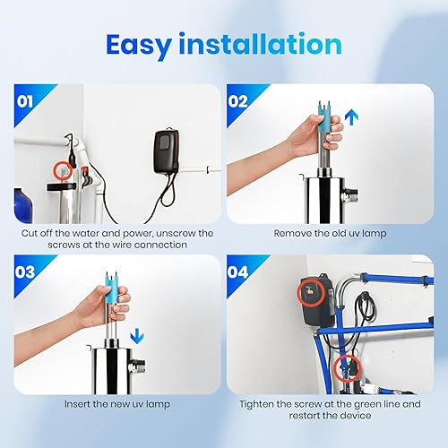 【Easy installation】No plumber required—you can easily replace it yourself in just two simple steps: first, remove the old lamp from your water purifier; then, insert the new UV replacement lamp. Once installed, it will quickly restore your water purifier to optimal performance, ensuring your water filtration system works efficiently again